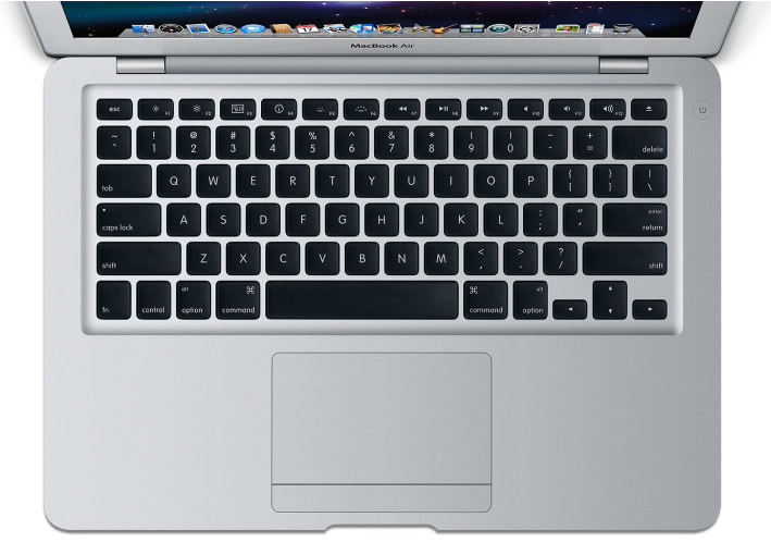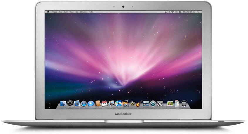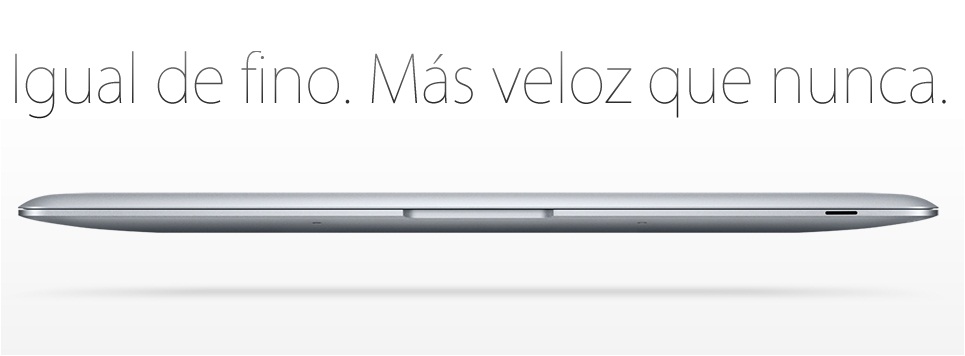 El MacBook Air viaja ligero. Con solo 1,36 kg, se erige como nueva referencia en informática portátil, y sin escatimar en teclado o pantalla. Con una arquitectura más rápida, un procesador gráfico NVIDIA avanzado, pantalla de 11 pulgadas, teclado de tamaño estándar y una serie de rompedoras innovaciones inalámbricas, el MacBook Air está hecho para el mundo inalámbrico.